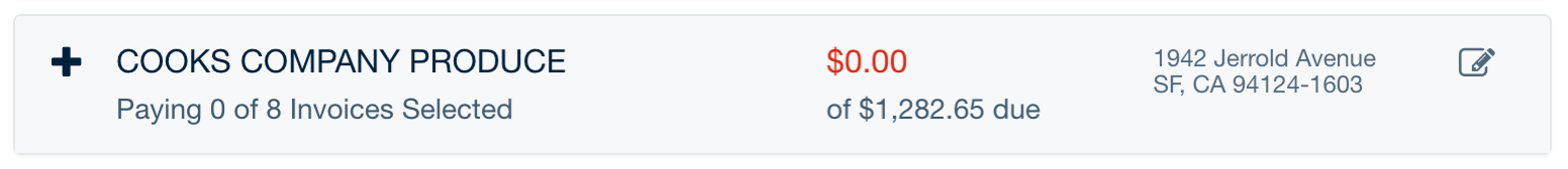 Later on, we realized that customers needed to know the address where checks were getting mailed to, so each vendor group header started looking like this, with an editable address field on the right: