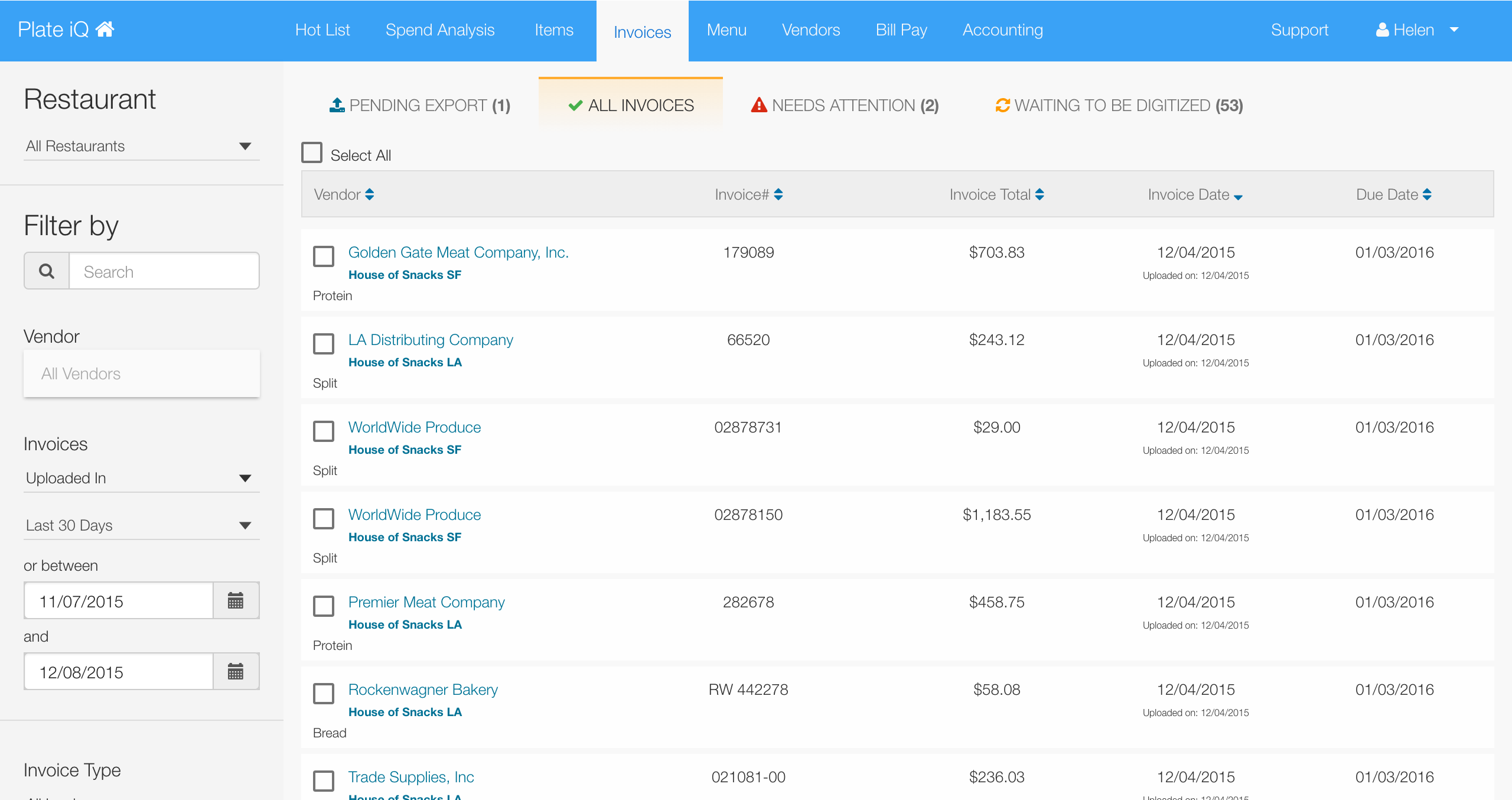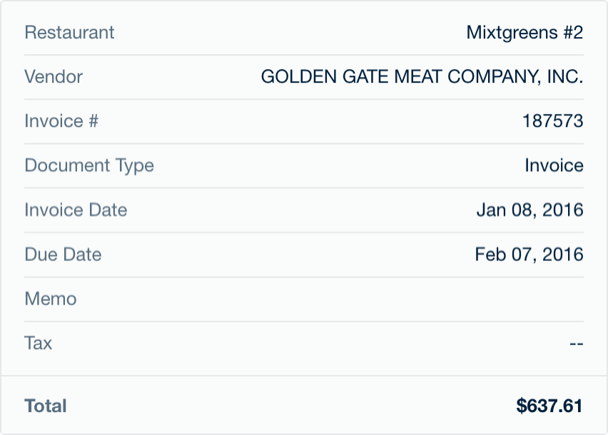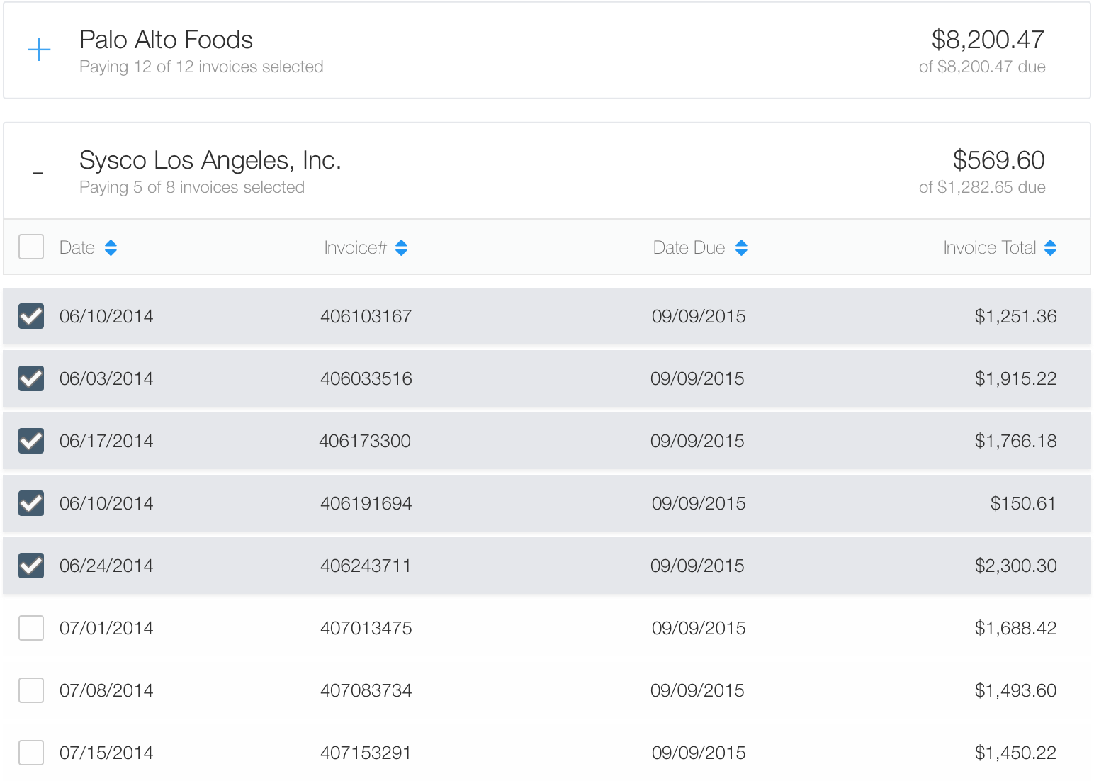 Sometimes, restaurants don't want to pay everything at once, so we showed them all invoices due per vendor, and allowed them to uncheck the ones they didn't want to pay.