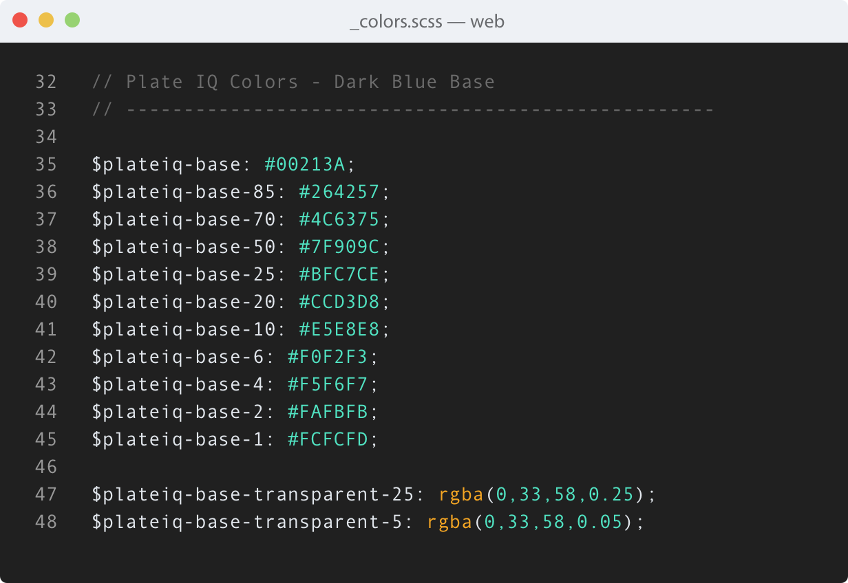 To make the overall Plate IQ UX more consistent, I created a color system, then applied it to components.