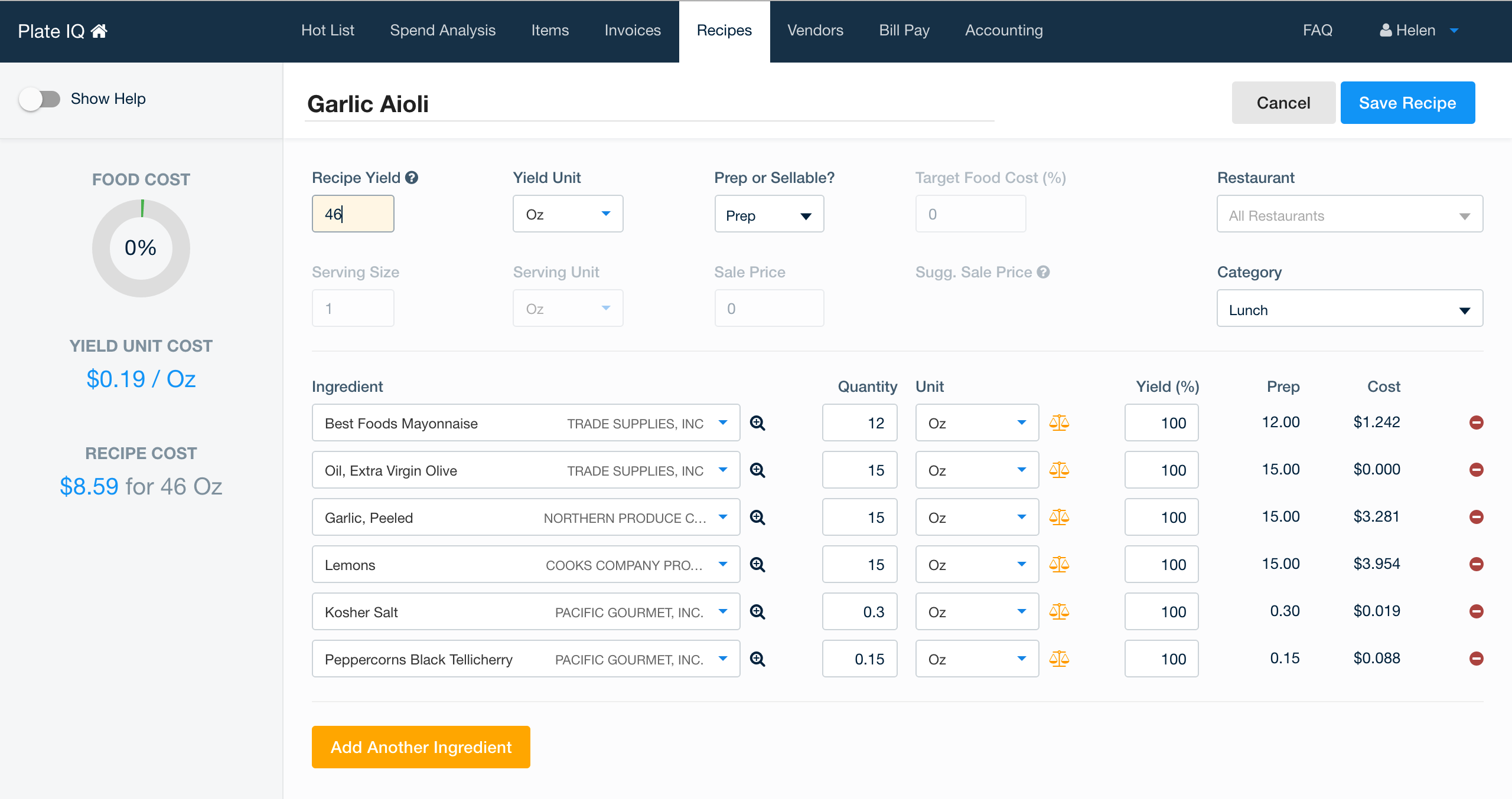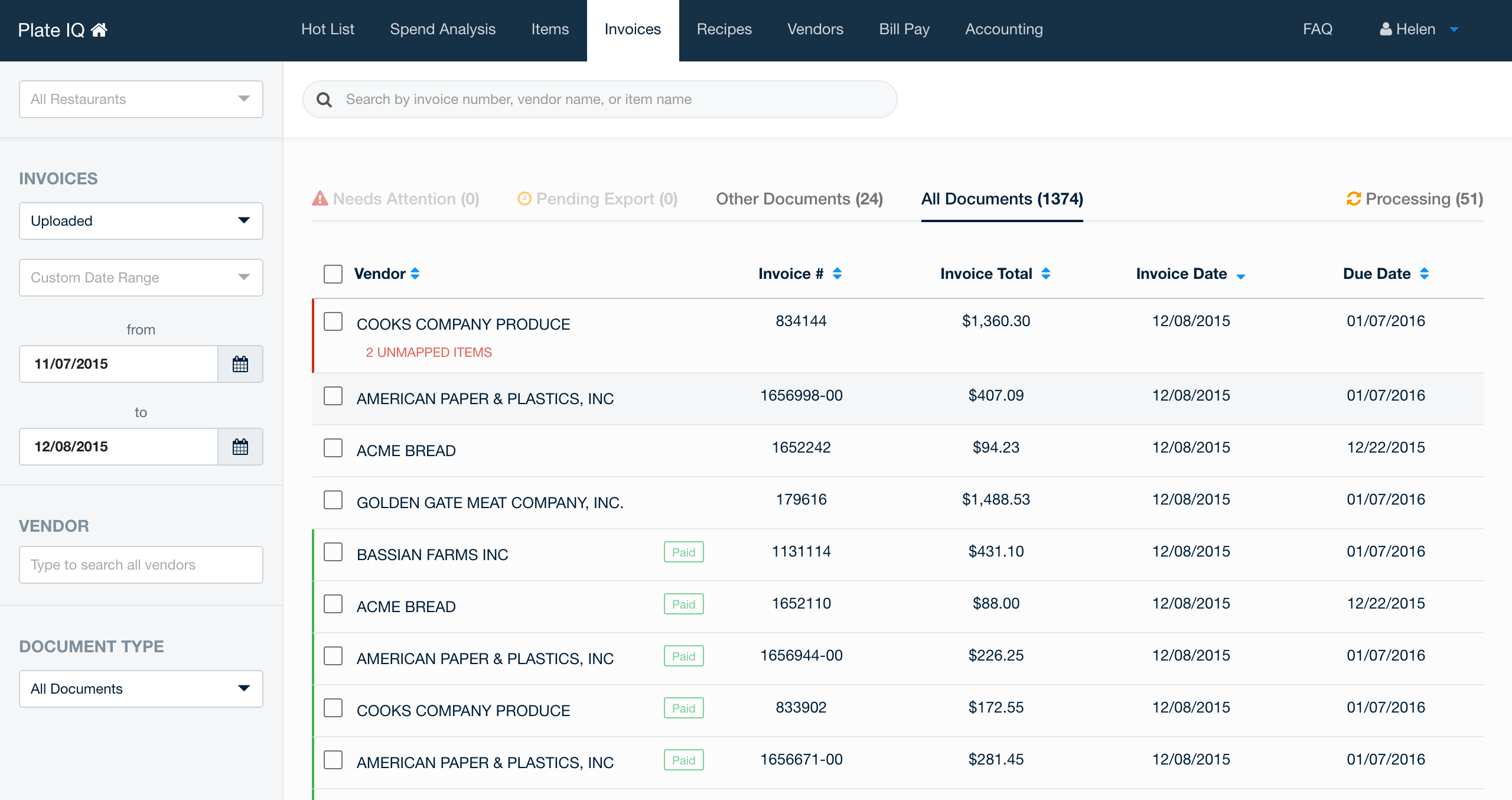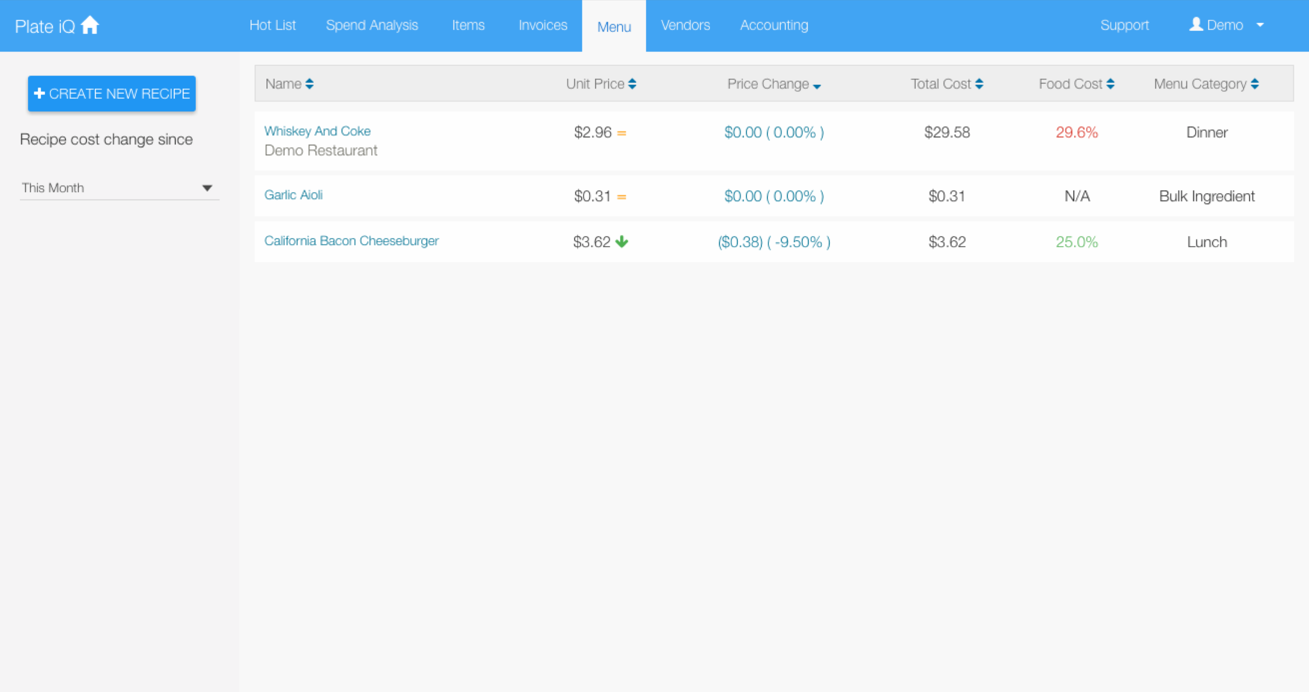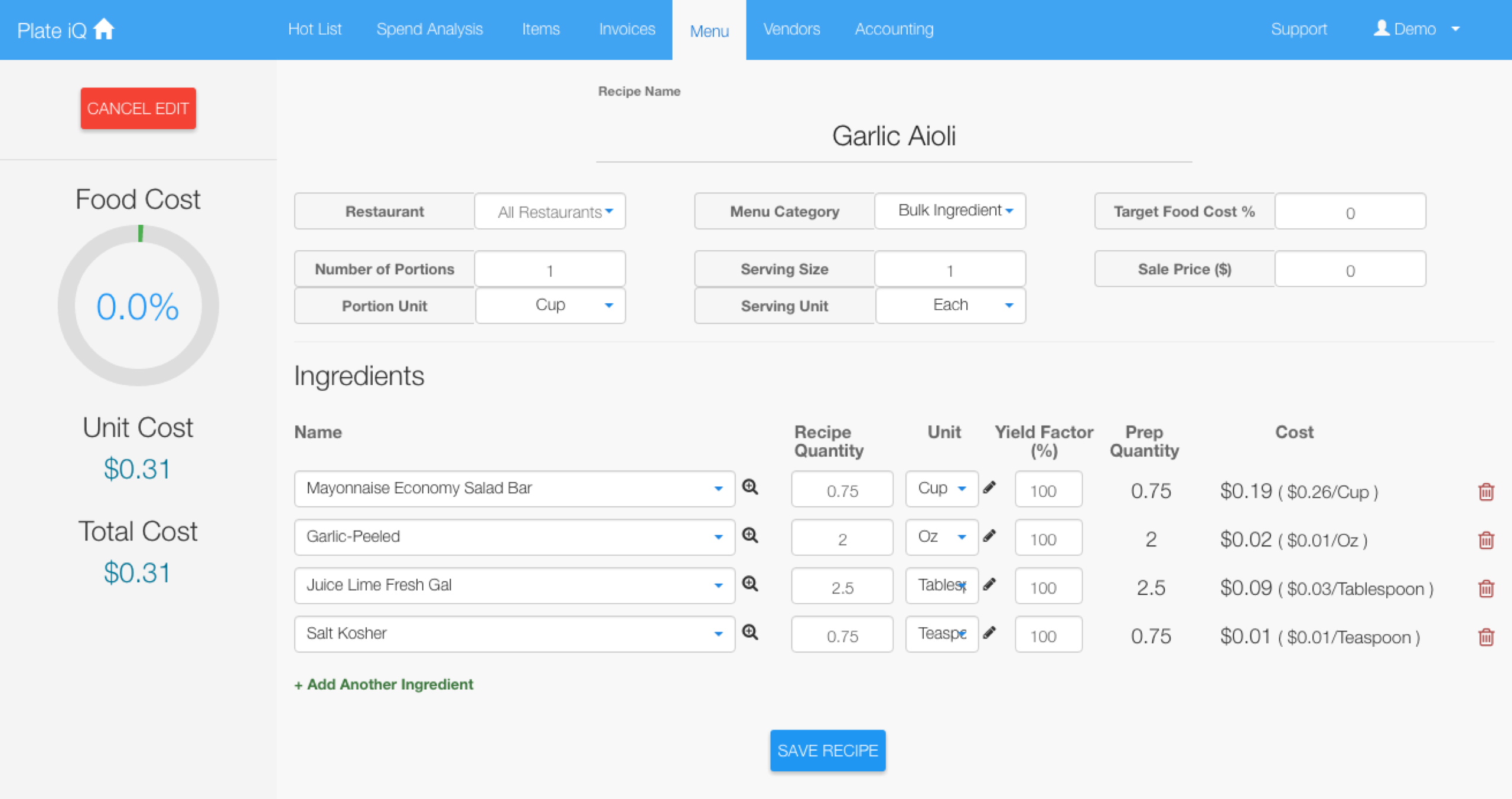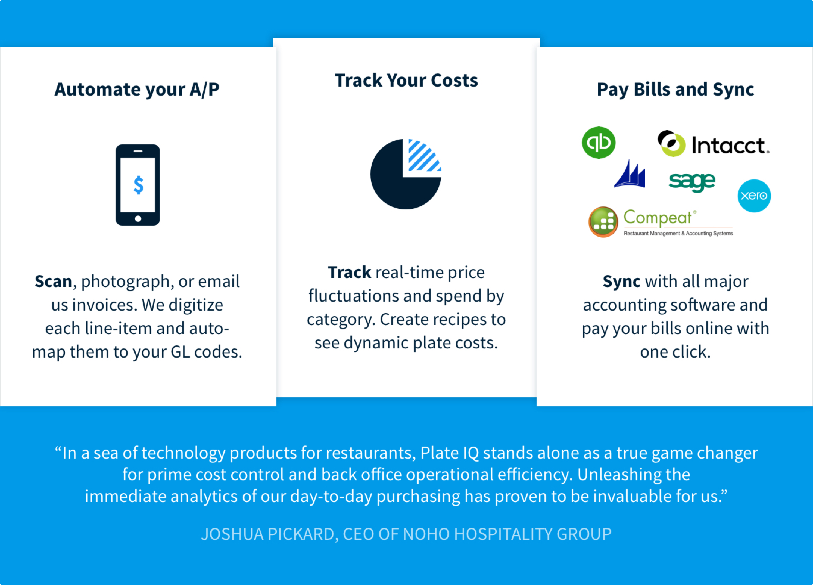 Plate IQ is enterprise software for restaurants to do back of house operations like accounting, menu costing, and inventory.