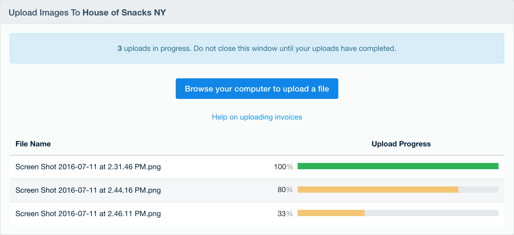 However, users couldn’t see all the invoices they’d uploaded, or closed the window before uploads were complete.